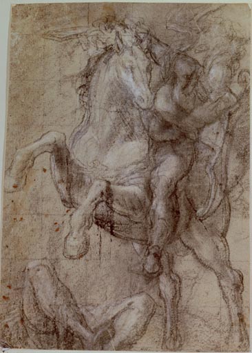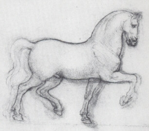Das Pferd hat wenig Ausdruck und auch Karl V sitzt zwar gerade aber er macht vielleicht wegen seines fortgeschrittenen Alters keine allzu gute Figur auf dem Pferd. Vielleicht wollte der Künstler aber gerade dies darstellen. Zu welcher Ausdrucksungskraft die bedeutenden Künstler der Renaissance bei Pferdedarstellungen fähig waren, zeigt seine Rötelzeichnung Tizans, aber auch die drei folgenden Bilder. Leonardo da Vinci - Studie für ein Reiterstandbild Rubens - Raub der Töchter des Leukippos Die Quadriga von San Marco in Venedig |