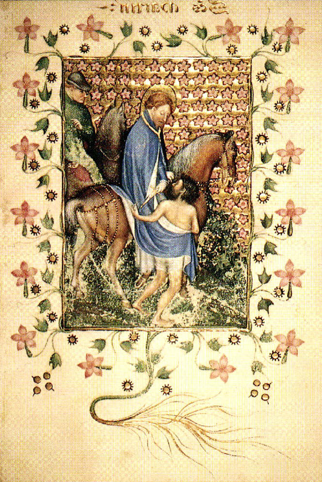 ![]() Ein besonders harmonisches Reiterbild von Michelino da Besozzo um 1400. Es zeigt eindeutig ein gut gerittenes Pferd, das mit leichter Hand geführt wird. |