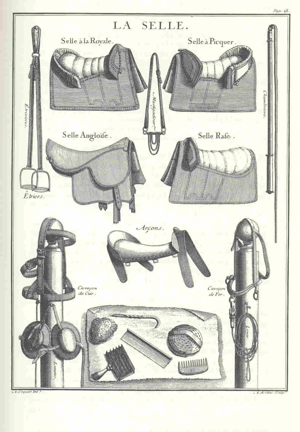 Den Selle Angloise ordnet er der Renn- und Jagdreiterei zu, ebenso wie den Selle Rase. Die oft geäußerte Meinung, dass der Selle à Picquer den Reiter einzwängt und nur Unbeweglichkeit und Steifheit zulässt, ist falsch. Wie die Abbildung des Sattelbaums zeigt, sind die Pauschen nicht starr sondern zum großen Teil beweglich. Zudem soll der Reiter die hintere Pausche nicht berühren sondern einige Zentimeter davon entfernt sitzen. Sie dient wie die vordere Pausche der Querstabilität des Sattels und allenfalls der Sicherheit bei den Schulen über der Erde. Im Gegensatz zu den modernen Dressursätteln, die die Kniee des Reiters durch große Pauschen blockieren, gestatten sie einem losgelassen sitzendem Reiter den entspannten Einsatz der Schenkelhilfen. Die heute als Dressursattel verkauften Produkte sind aus dem englischen Rennsattels (Pritschensattel) entwickelt mit an den gestreckten Sitz angepassten Sattelblättern. Die Polsterung besteht aus zwei schmalen Kufen, die den Pferderücken auf möglichst kleiner Fläche berühren sollen, um bei extremer Belastung wie im Rennsport übermäßiges Schwitzen zu vermeiden. Oft rutschen sie nach vorn, verlagern das Reitergewicht vermehrt auf die Vorhand und erschwerern so die Versammlung. Der von Gueriniere bevorzugte Sattel liegt dagegen sicher an der gewünschten Stelle und verteilt das Reitgewicht auf eine möglichst große Fläche, um den Druck zu minimieren. Ein gut passender Westernsattel entspricht den Vorstellungen Guerinieres weit mehr. (siehe auch: Schenkellage). Der in der deutschen Ausgabe von Grisone durchgehend abgebildete Satteltyp ist in den Reitakademien mit Sicherheit nie verwendet worden. Er ist ausschließlich beim Lanzenstechen benutzt worden. Mittelalterliche Satteltypen |